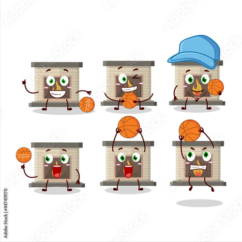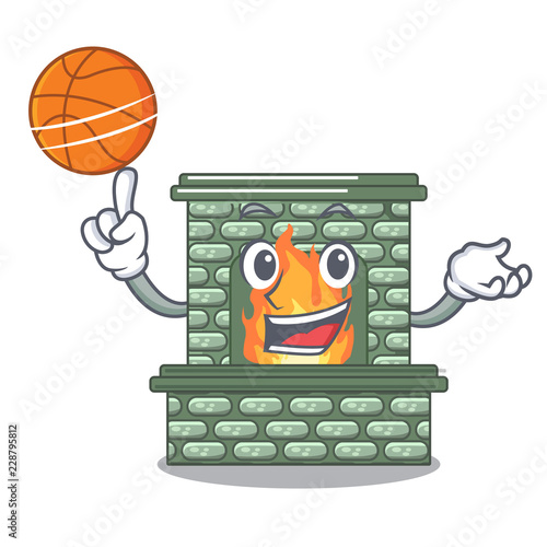 Talented house fireplaces with fire cartoon character as a basketball athlete