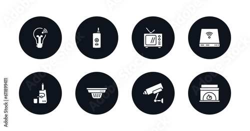 symbol for mobile filled icons set. filled icons such as smart light, vaporizer, television, drive, cold-pressed juicer, smoke detector, video surveillance, furnace vector.