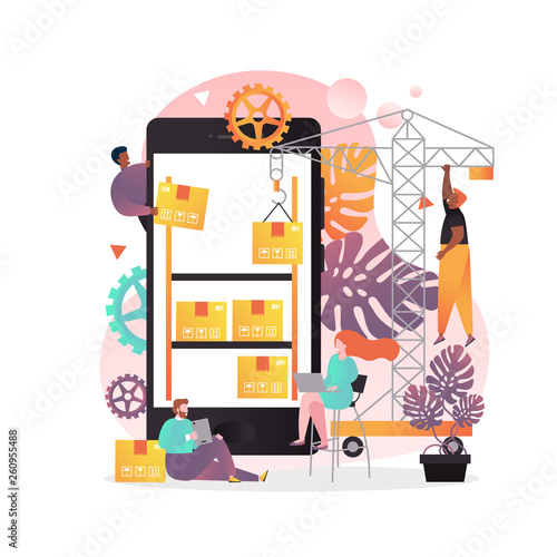 ERP Enterprise resource planning landing page illustration,  productivity and company enhancement. Illustration for websites, landing pages, mobile applications, posters and banners.