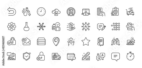 Fingerprint, Delivery cart and File storage line icons pack. AI, Question and Answer, Map pin icons. Chemistry lab, Online warning, Text message web icon. Vector