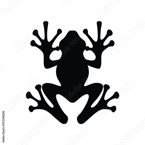 Black silhouette vector of a frog with detailed limbs and toes on a white background