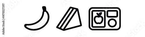 Black Vector Lunch Box Symbol with Snack and Drink Elements
