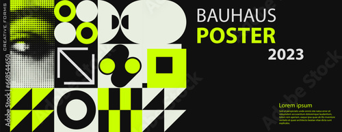 Modern exhibition ticket template layout made with abstract vector geometric shapes. Brutalism inspired graphics. Great for branding presentation, poster, cover, art, tickets, prints, etc.