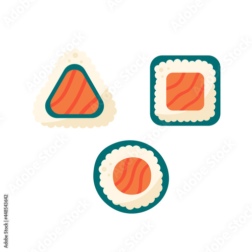 Delicious sushi rolls japanese food asian cuisine maki rolls seafood rice nori seaweed meal healthy eating lunch dinner food illustration vector icon