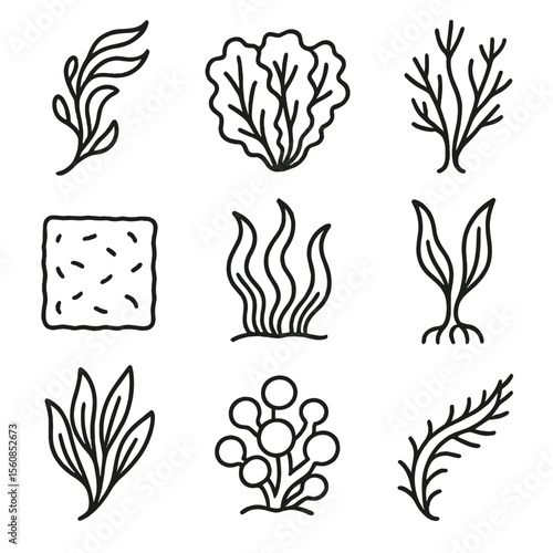 Stylized Set of blue seaweed, vector seaweed illustrations