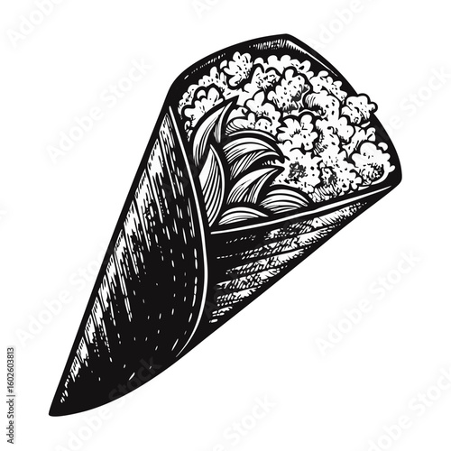 Retro Burrito Illustration.Vintage Food Wrap Vector.Hand Drawn Sushi Roll.Engraving Style Mexican Food.Street Food Roll Graphic