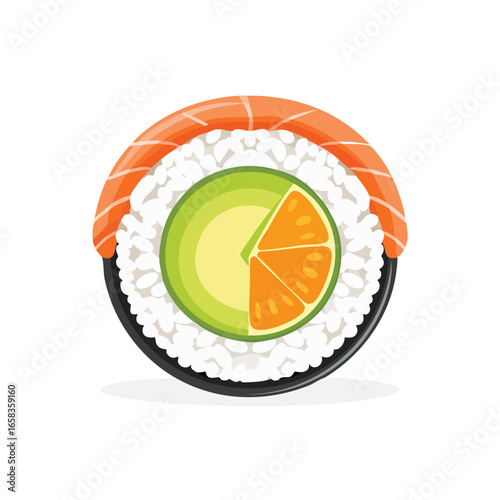 Delicious shrimp sushi vector illustration with avocado and nori seaweed wrap