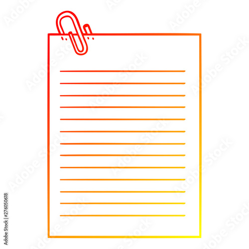 warm gradient line drawing cartoon lined paper with paperclip
