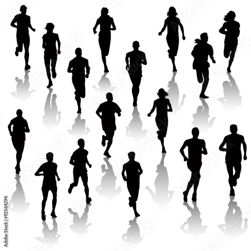 Run, Running men and women, Running Men and Women Silhouettes Vector Set