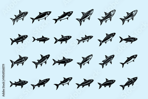 fish silhouette vector illustration fish, illustration, vector, in silhouette, underwater, undersea, seafood, animal, sea, cut out, horizontal, icon set, outline, usa, cartoon, fishing, crab, nature,