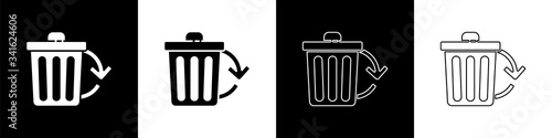 Set Recycle bin with recycle symbol icon isolated on black and white background. Trash can icon. Garbage bin sign. Recycle basket sign. Vector Illustration