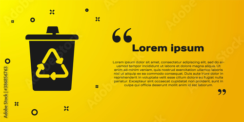 Black Recycle bin with recycle symbol icon isolated on yellow and white background. Trash can icon. Garbage bin sign. Recycle basket sign. Random dynamic shapes. Vector Illustration