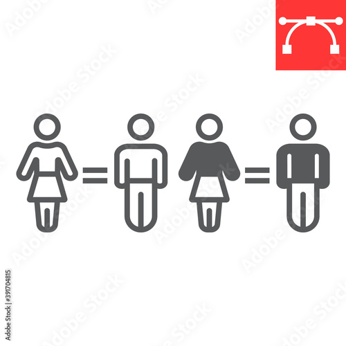 Gender equality line and glyph icon, sexism and feminism, equal rights sign vector graphics, editable stroke linear icon, eps 10.