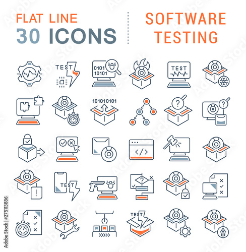 Software Testing Line Banner Web Icon Set Vector Illustration, Software Testing Quality Assurance Test Case System Testing Performance Security Defect Tracking Update