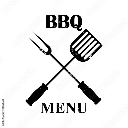 BBQ fork and spatula silhoutte icon. Clipart image isolated on white background