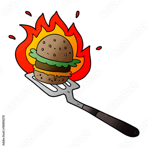 Cute cartoon hand drawn vector Barbecue spatula and fork sign silhouette.