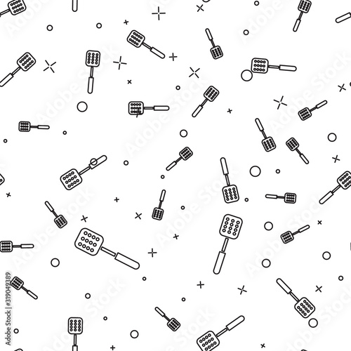 Black line Spatula icon isolated seamless pattern on white background. Kitchen spatula icon. BBQ spatula sign. Barbecue and grill tool. Vector Illustration