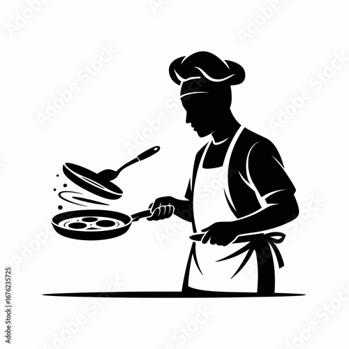 Set of Frying Pan Silhouettes with Cooking Utensils and Food