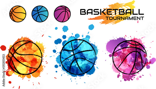 Set of color templates on the theme of basketball. Vector editable illustration. Elements for business card design, style, website, print on a t-shirt