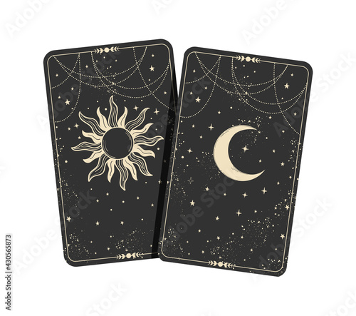 Tarot aesthetic divination cards. Occult tarot design for oracle card covers. Vector illustration isolated in dark background
