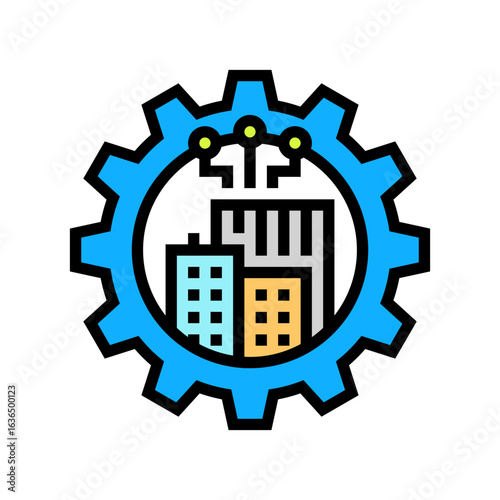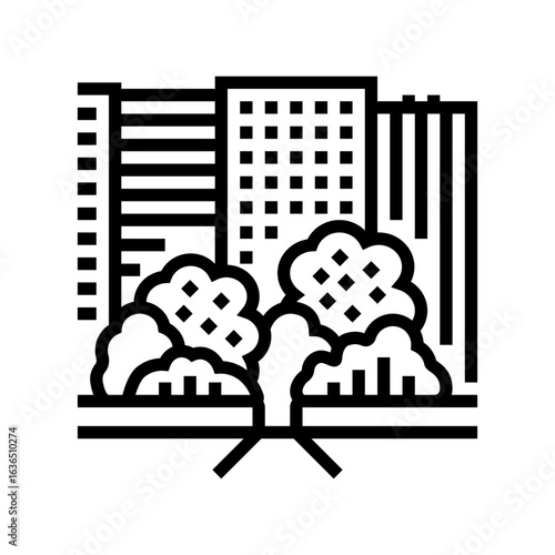 Urban development concepts illustrated through simple line icons featuring construction and architecture elements