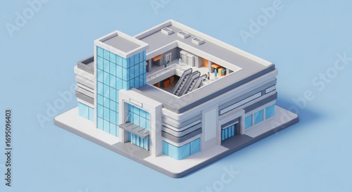 Futuristic urban architecture surrounded by minimalist clouds and contrasting design elements. Ideal for city planning, innovation, sustainability, technology, urbanization, modern infrastructure