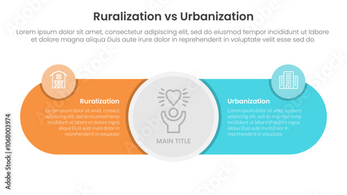 urbanization vs ruralization comparison concept for infographic template banner with big round box table with two point list information