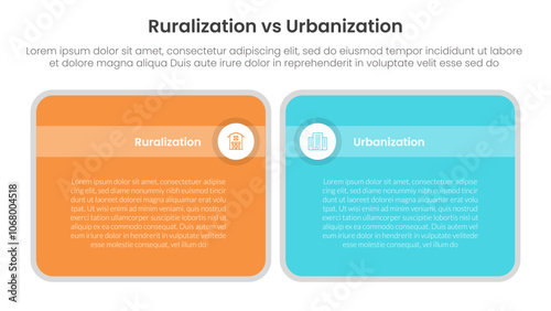 urbanization vs ruralization comparison concept for infographic template banner with creative circle and round rectangle shape left and right with two point list information