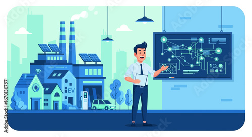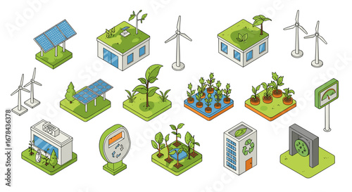 Sustainable energy and eco-friendly architecture in isometric urban design