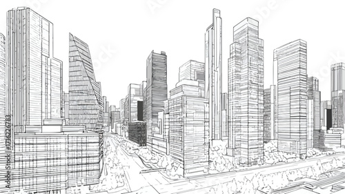 Modern city skyline building design illustration for architecture and urban planning projects and presentations
