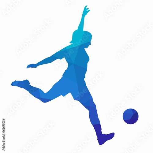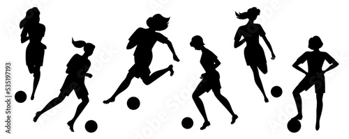 Female Soccer player, Woman's Soccer in motion. Women's football running up for ball tee shot front view sport Silhouette