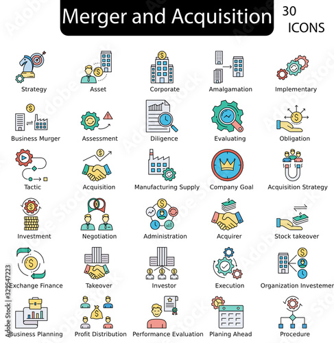 Financial planner icons set outline vector. Money account. Business budget thin line color flat on white