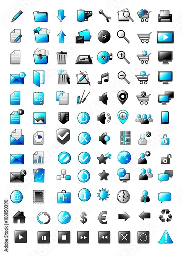 Video, Icon, Sticker, Set, Symbol, Zeichen, Multimedia, schwarz