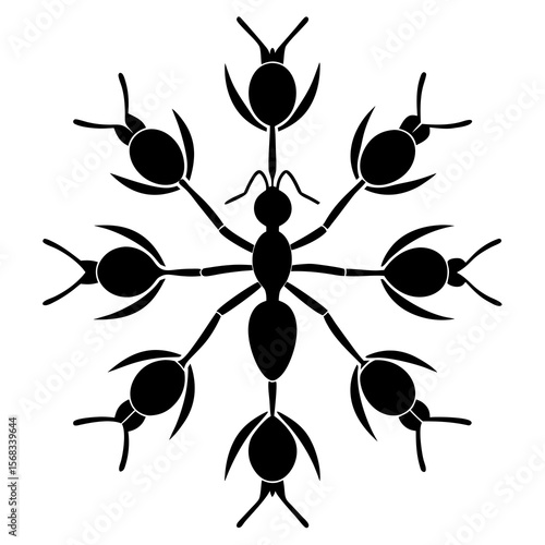 Several ants gather around a piece of food, working together to transport it, Animal Vector Graphic
