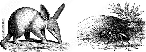 Winged ants emerging from the nest for their mating flight, Animal Illustration