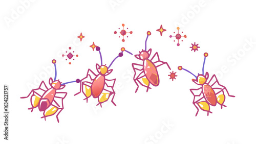 Worker ants surrounding the queen ant in an underground chamber, Vectorized Animal Art