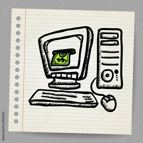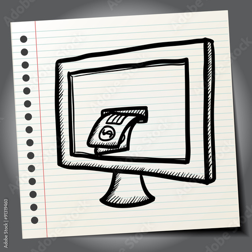 Doodle illustration computer with money inside screen