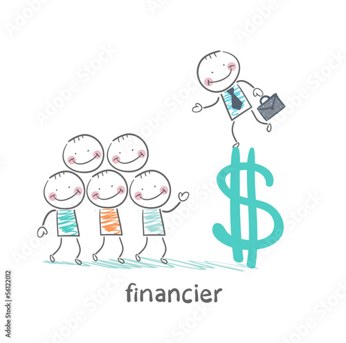 financier is on the dollar sign and talking with people