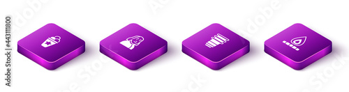 Set Isometric Ice cream in waffle cone, Benjamin Franklin, Paper glass and Campfire icon. Vector