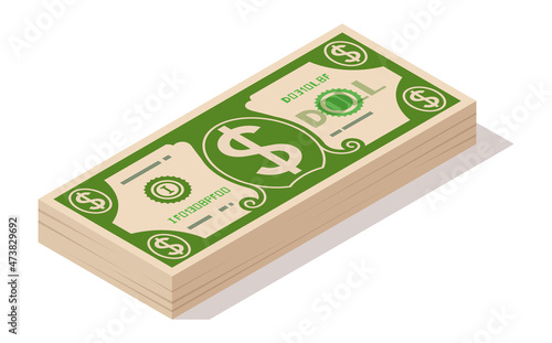 Bundle of hundred-dollar bill, stacks of banknotes, pile of cash, paper money. The concept of financial success and wealth. Isometric vector illustration isolated on white background