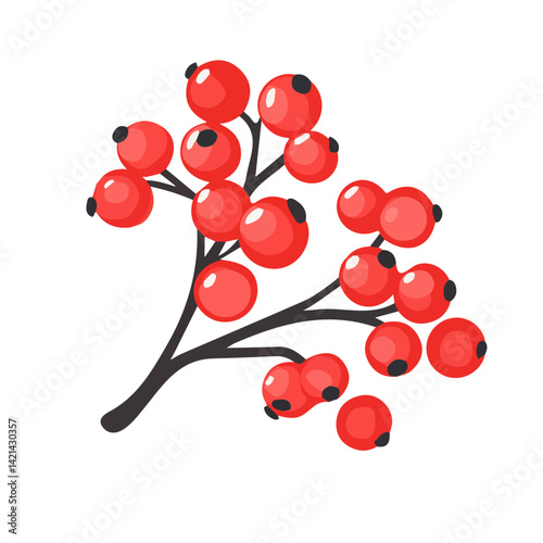 Red Berry spray, Christmas tree branch Decoration, Xmas holiday decoration. vector illustration isolated on white background