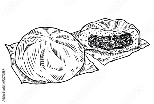 Hand-drawn Chinese BBQ Pork Bun