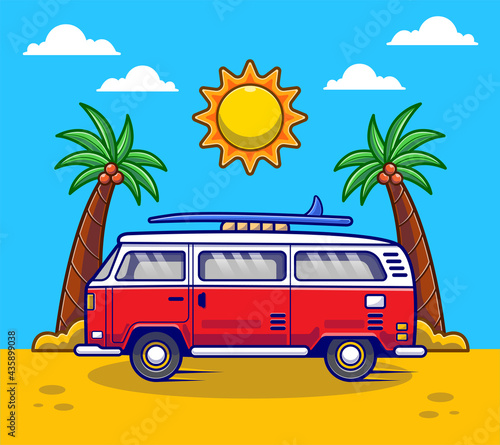 Van Car summer holiday cartoon illustration. Vehicle home truck concept flat illustration
