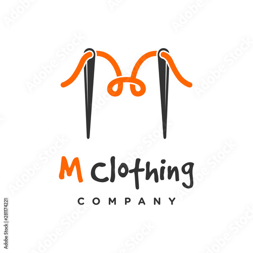 M letter logo illustration design vector combined with hanging clothes illustration graphic elements.  suitable for a clothing brand