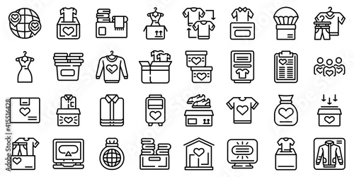Clothes donation icons set. Outline set of clothes donation vector icons for web design isolated on white background