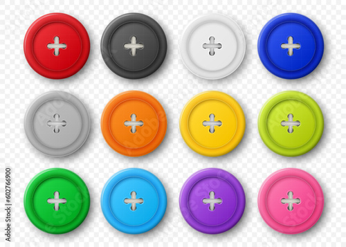 Vector 3d Realistic Buttons for Clothes Icon Set Closeup Isolated. Fashion, Art, Needlework, Sewing, Scrapbooking Decor. Round Clothes Button Collection, Top View
