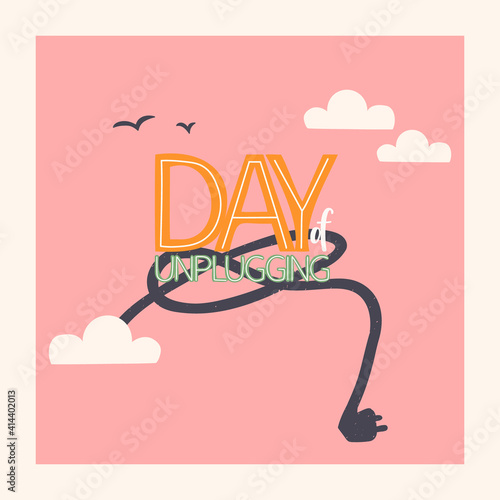 Day of Unplugging. Lettering with disconnected socket. Digital detox. Vector multycolor illustration isolate.