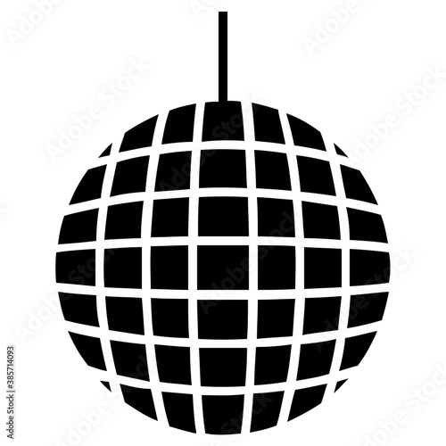 A disco ball is a type of disco equipment that features mirrored and colored elements which reflect light, serving as a retro decorative element, depicted here as a flat icon with an outline in a