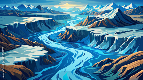 Dramatic winter thundersnow storm with swirling blizzard and lightning. Flat Vector Illustrations. EPS Editable