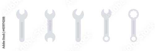 Wrench icon set. Work tools flat collection. Vector isolated on white